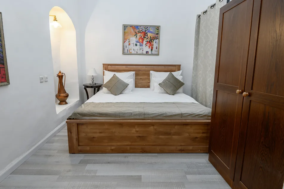 המבנה בו ממוקם המלון בנוי במבנה אבן עתיק ואותנטי ברחוב הנשיא שבקרית האמנים בצפת. הוא מתפרש לגובה, במעלה המדרון יותר מאשר לרוחב. החדרים והסוויטות ממוקמים במפלסים שונים שביניהם מחברים גרמי מדרגות חיצוניים. כך, כל אורח מקבל את הפרטיות ואת השקט. במפלס שממוקם בין החדרים ישנה גינה קטנה אשר גם הצמחים בה נשתלו רק לא מזמן ולכן הם עדיין שתילים רכים. הגינה מוסיפה למבנה האבן העתיק גם ירק וצבע. בין החדרים ישנה מרפסת נוף מקסימה הצופה אל נופם של הרי הגליל. שולחנות עתיקים מזמינים אתכם לצאת אל מחוץ לחדר אל המרפסת ולשתות שם את כוס הקפה של הבוקר (ואז לגשת לארוחת בוקר בבית הקפה המקסים).
