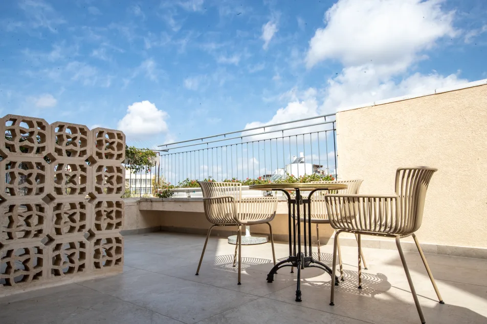 ארוחת הבוקר כוללת גבינות טריות, פירות וירקות, ביצים מקושקשות, מגוון מאכלים חמים, ריבות תוצרת בית, לחמים אפויים טריים ומגוון סוגי קפה. חדר האוכל מוקף בנוף של מרכז העיר ירושלים. חשוב לציין כי המלון כשר