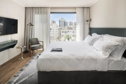 מלון בוטיק ג’ו שטיבל בתל אביב הוא פנינה יוקרתית המשלבת עסקים והנאה בלב העיר התוססת. המלון מציע חדרי אירוח מרווחים ומעוצבים בקפידה, לובי מפואר, בר ומסעדה, לאונג’ עסקים מתקדם, חלל לאירועים, וגולת הכותרת – גג מרהיב עם בריכת אינפיניטי הצופה לנופיה עוצרי הנשימה של תל אביב. השטחים הפתוחים הרבים במלון יוצרים הרמוניה מושלמת בין קצב החיים העירוני לבין אווירה ביתית ורגועה. העיצוב הפנימי משלב אסתטיקה מוקפדת וחווייתית, המאפשרת לאורחים לברוח מהמולת הרחוב אל מרחב אישי ונעים, תוך שמירה על סטנדרטים גבוהים של נוחות ויוקרה.