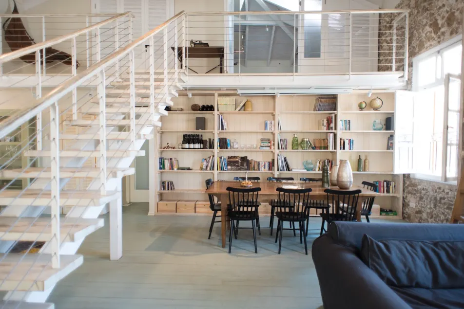 בליבו של שוק הפשפשים - לצד גלריות, בוטיקים וחנויות מעצבים- שוכן לו בבניין היסטורי הלופט של מלון מרקט האוס. הלופט הוא חלל גדול, מעוצב, מסוגנן ונחלקים לשתי קומות וגג מרווח. קומת הכניסה, המעוצבת בסגנון כפרי, עם תקרת עץ גבוהה ומרשימה, מרחב פתוח, בו מתמזגים החלקים השונים של הבית, מה שמאפשר ניצול מקסימלי של המרחב והנוחות. בקומה הראשונה נמצא מטבח גדול ומאובזר הכולל מקרר,תנור, כיריים ופינת אוכל, סלון מעוצב ומרווח עם טלוויזיית 65 אינטש, ספריה וריהוט אקלקטי. כמו כן בקומת הכניסה יש חדר שינה מרווח בגודל של כ 30 מ"ר המתאים לזוג. הקומה העליונה נועדה להקנות שקט ופרטיות ובה ממוקם חדר שינה נוסף אשר מתאים לעד 5 אורחים. בכל אחד מחדרי הלינה יש שירותים ומקלחת צמודים. מקומת הראשונה יוצאים לגג מרווח, עשיר בצמחיה ומאובזר בפינות ישיבה, ג'קוזי חיצוני בגג רחב ידיים, הגג אידיאלי לאירועים עסקיים מיוחדים, אירועים פרטיים, או לינה מרווחת ובסטייל למשפחה וקבוצות חברים.