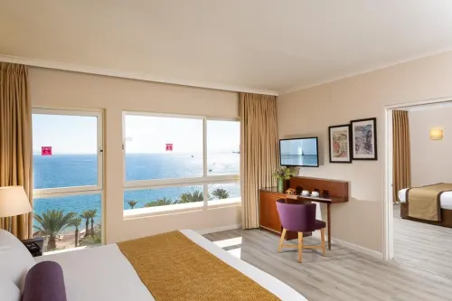 חדרים הממוקמים בקומה מינוס 1 וכוללים מקלחון, מיני בר לאחסון, מייבש שיער וערכת קפה. - צריך להציג תו נכה במרבית החדרים קיימת מרפסת צמודה הפונה אל נוף פנורמי לים ולבריכה המרכזית. בחדרים אלו ניתן להגיע עם כלב נחייה. לתשומת לבכם: מעלית השבת אינה עוצרת בקומה זו. תפוסה מרבית: זוג + 2 ילדים