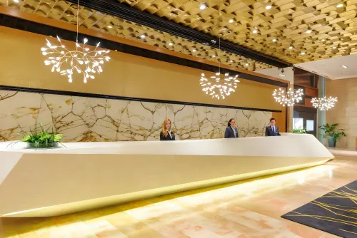 לובי נעים וזמין עם פינות הסבה ומזנון